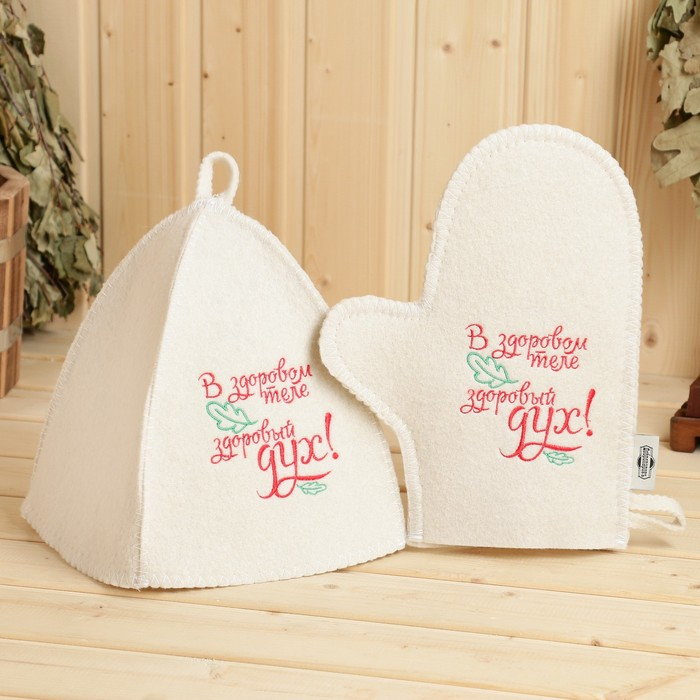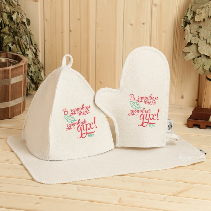 Набор банный 3 предмета "В Здоровом теле, здоровый дух", белый, в плёнке