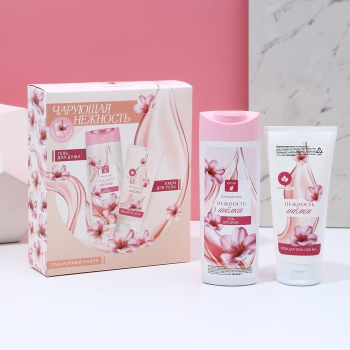 Подарочный набор косметики «Чарующая нежность», гель для душа 250 мл и крем для тела 200 мл, ЧИСТОЕ СЧАСТЬЕ