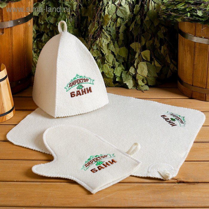 Набор банный 3 предмета "Директор бани", белый, в плёнке