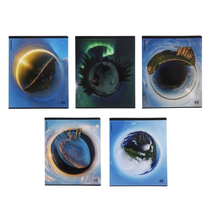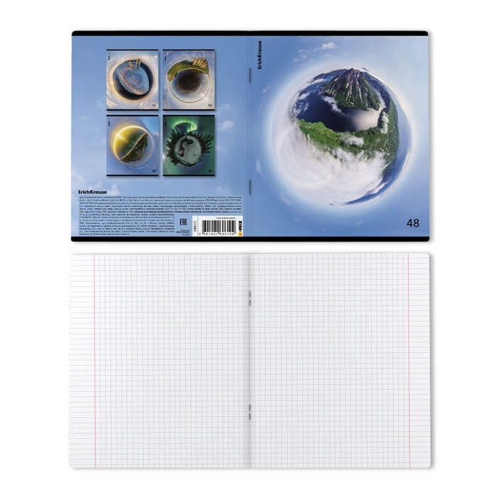 Тетрадь 48 листов в клетку, ErichKrause "Фишай", обложка мелованный картон, матовая ламинация, блок офсет 100% белизна, МИКС