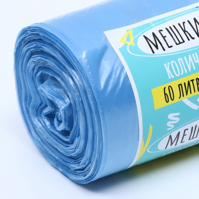 Мешки для мусора в рулоне "UpakLand" 60 л, голубые,ПНД, толщина 15 мкм, 50 шт