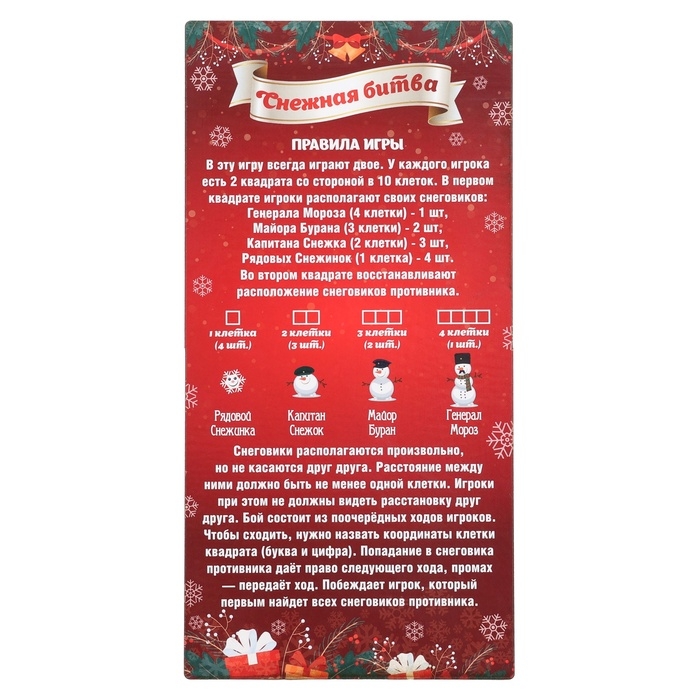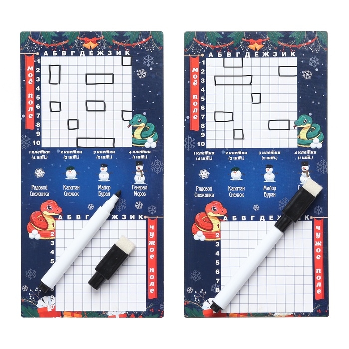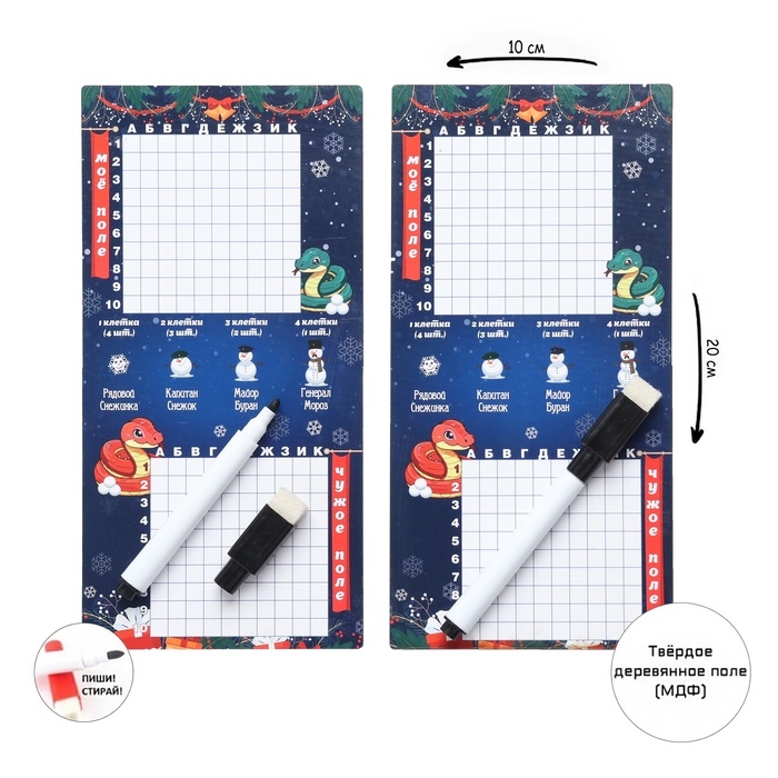 Настольная игра морской бой "Снежный бой", 2 стираемых маркера, 2 поля из дерева