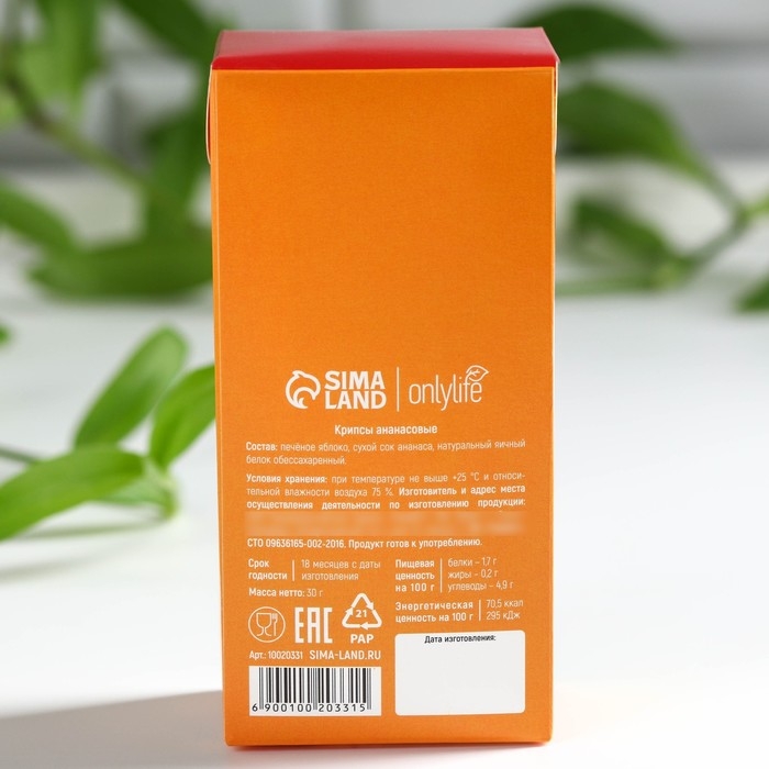Состав: печёное яблоко, сухой сок ананаса, натуральный яичный белок обессахаренный.