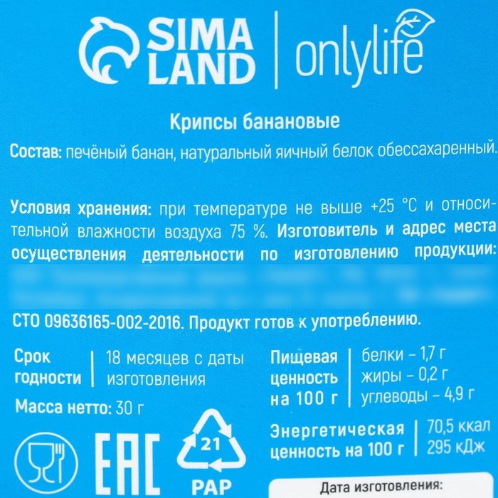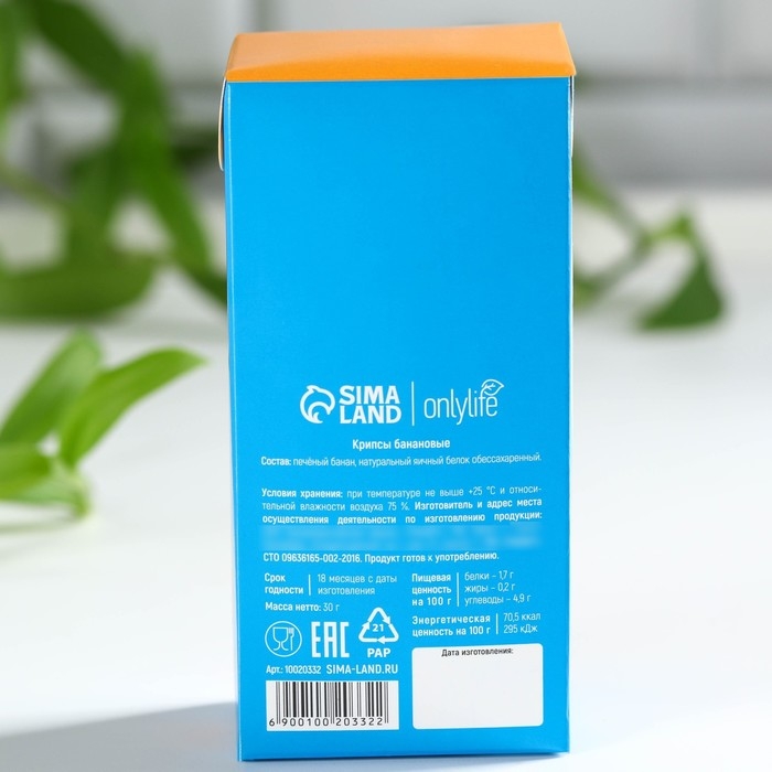 Состав: печёный банан, натуральный яичный белок обессахаренный.