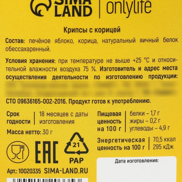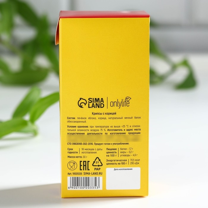 Состав: печёное яблоко, корица, натуральный яичный белок обессахаренный.