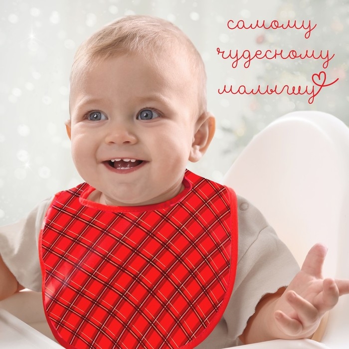 Нагрудник для кормления новогодний «Лучшему малышу», непромокаемый на липучке, с карманом, подарочная упаковка, Крошка Я
