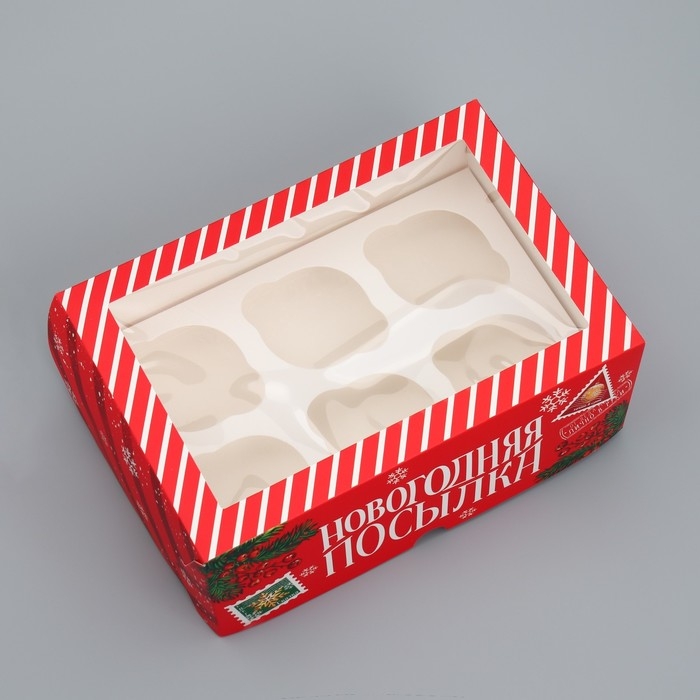 Коробка складная на 6 капкейков с окном «Новогодняя посылка», 25 х 17 х 10 см, Новый год