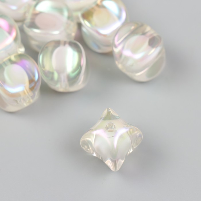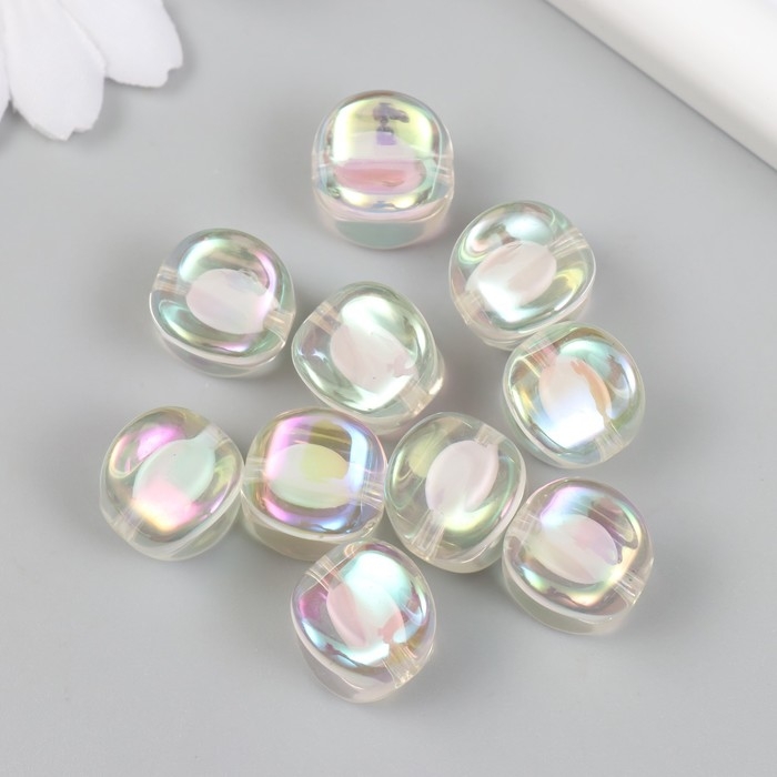 Бусина для творчества пластик "Кубик со сплющенными краями" перламутр d=1,6 см набор 10шт.