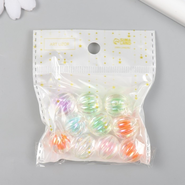 Бусина для творчества пластик "Шарик арбуз с цветной серединкой" МИКС d=1,6 см набор 10 шт
