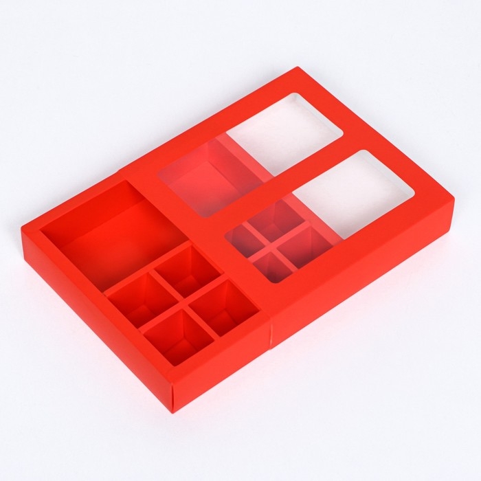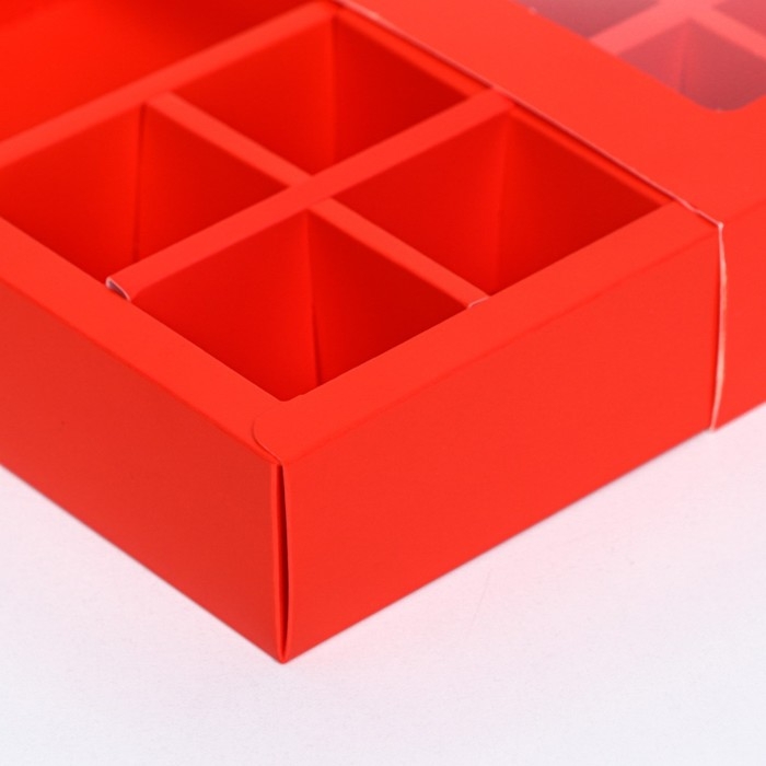Коробка для 8 конфет + шоколад, с окном, алая, 17,7 х 17,7 х 3,8 см. Кондитерская упаковка