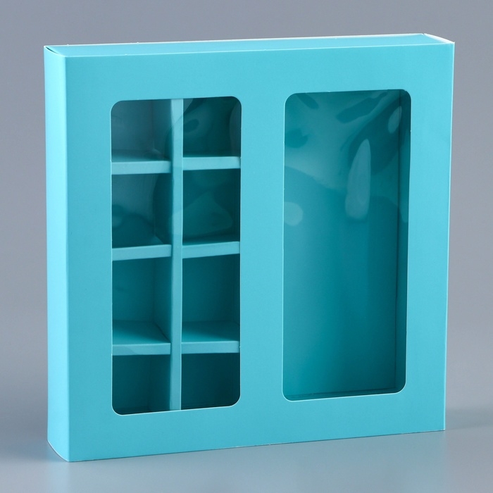 Коробка для 8 конфет + шоколад, с окном, мята, 17,7 х 17,7 х 3,8 см. Кондитерская упаковка