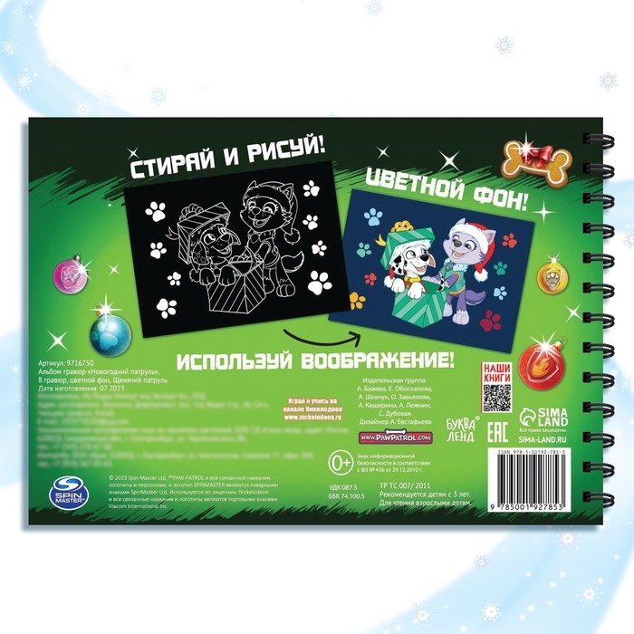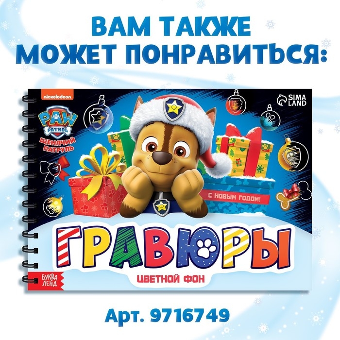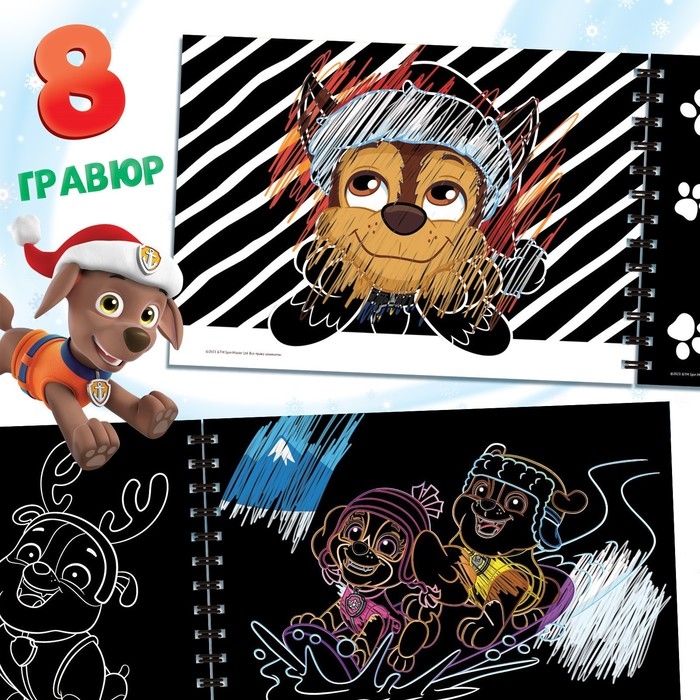 Альбом гравюр «Новогодний патруль», 8 гравюр, 12 стр., цветной фон, Щенячий патруль