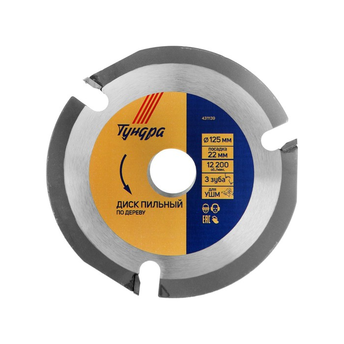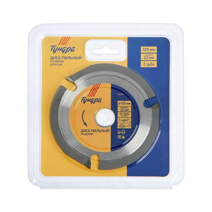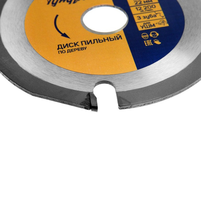 Диск пильный для УШМ ТУНДРА, для быстрой и плавной обработки дерева, 125 х 22 мм, 3 зуба