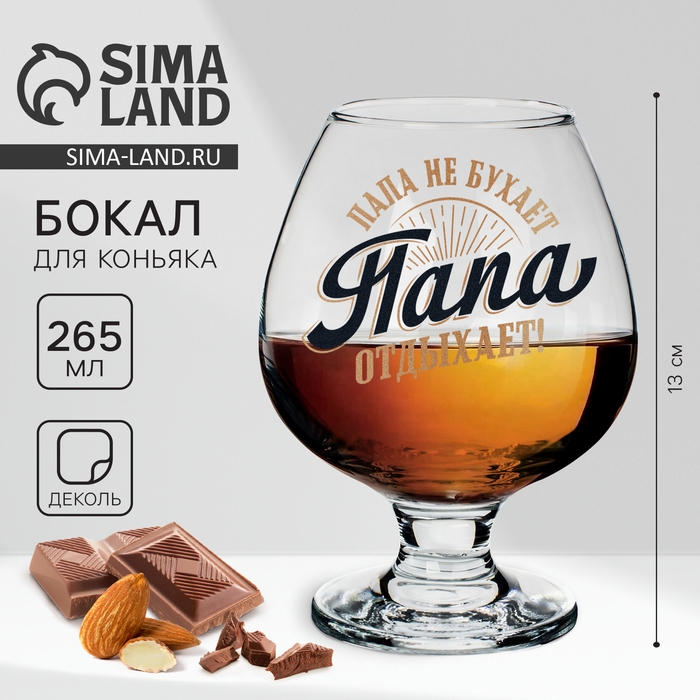 Бокал для коньяка «Папа отдыхает», деколь, 265 мл.