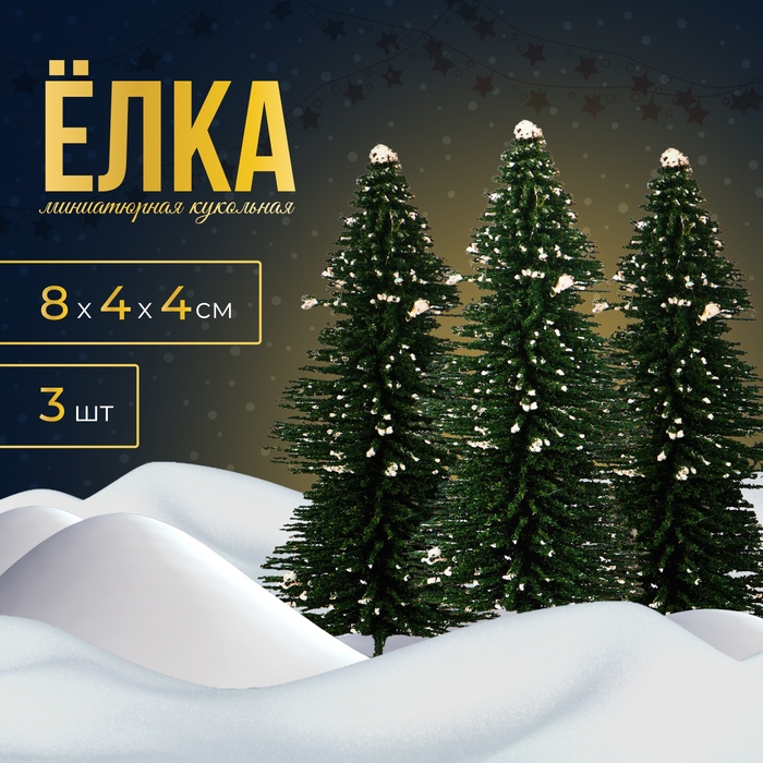 Новый год! Миниатюра кукольная «Ёлочка со снегом», набор 3 шт., размер 1 шт. — 8 × 4 × 4 см