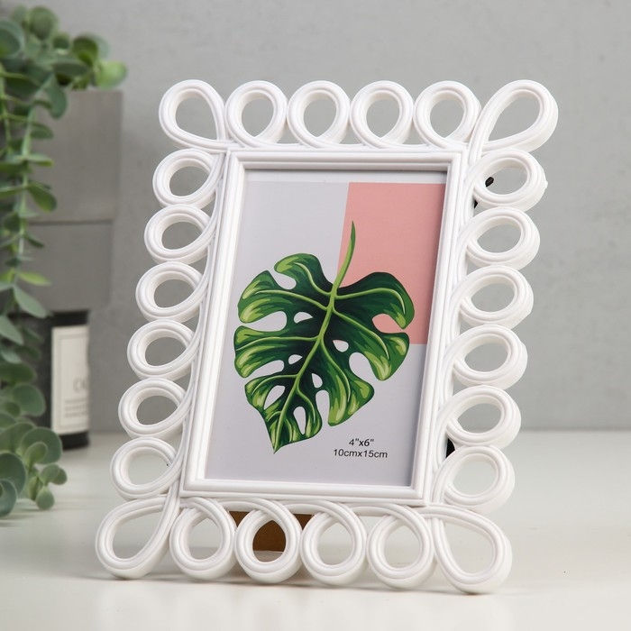 Фоторамка пластик 10х15 см "Петельки" белая 17,5х22 см