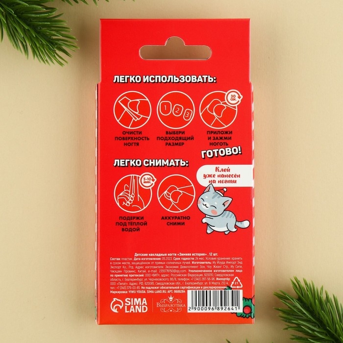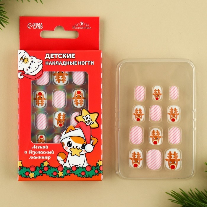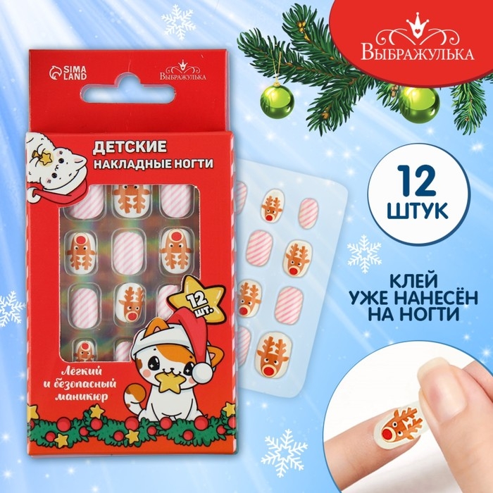 Детские накладные ногти на новый год «Зимняя история», 12 шт