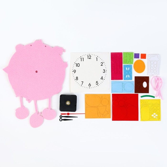 Часы из фетра, сделанные своими руками, будут радовать вас и ваших детей долгое время. Фетр - безопасный для здоровья ребенка природный материал. Ребенок может самостоятельно или с помощью родителей собрать поделку из предложенных материалов, Для работы необходима одна батарейка типа АА. Внимание: Комплект содержит мелкие детали, поэтому рекомендован детям старше 3 лет!