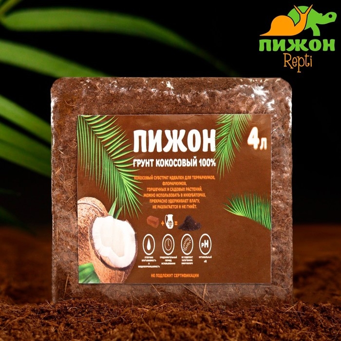 Субстрат кокосовый "Пижон" в брикете, 100% торфа, 4 л