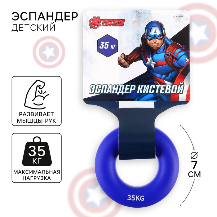 Эспандер кистевой, нагрузка 35 кг, цвет синий "Капитан Америка", Мстители