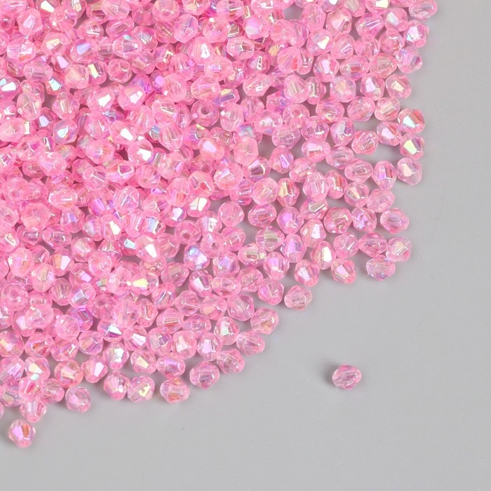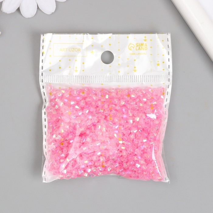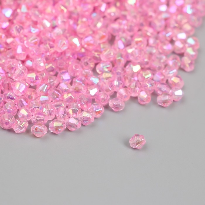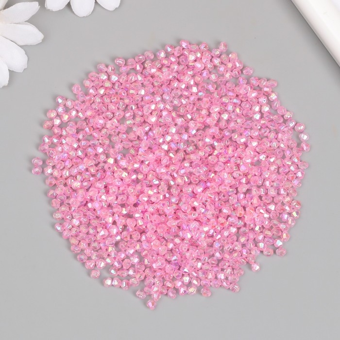 Бусины для творчества пластик "Ромб-кристалл голография розовый" набор 20 гр 0,4х0,4 см
