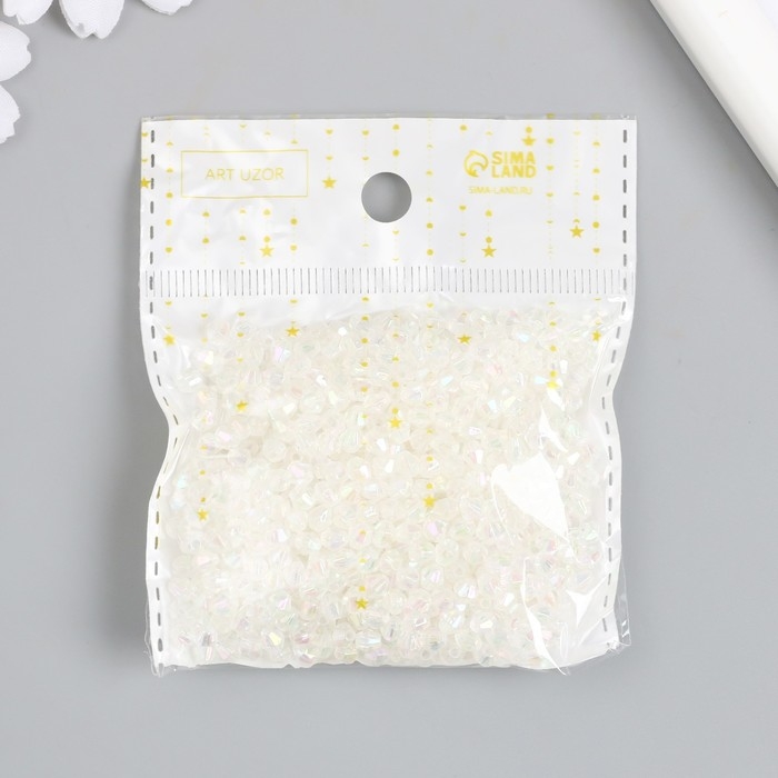 Бусины для творчества пластик "Ромб-кристалл голография белый" набор 20 гр 0,4х0,4 см