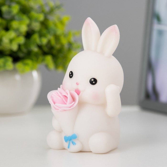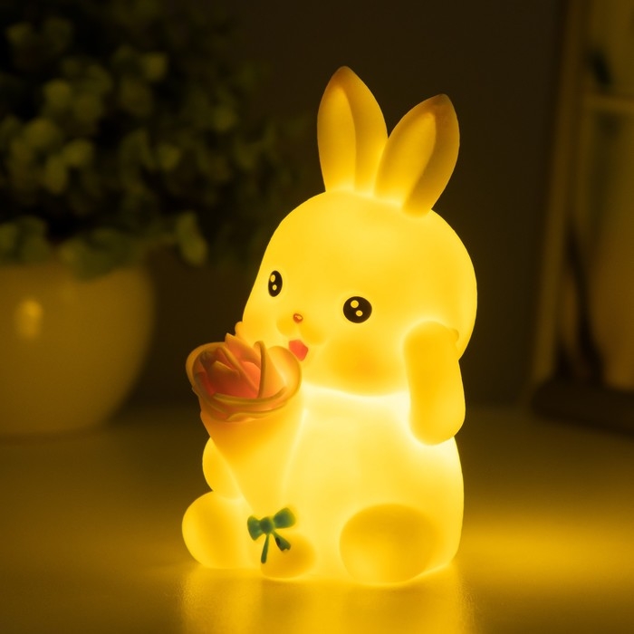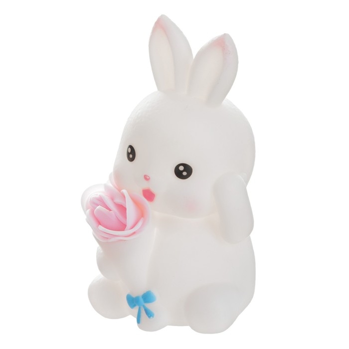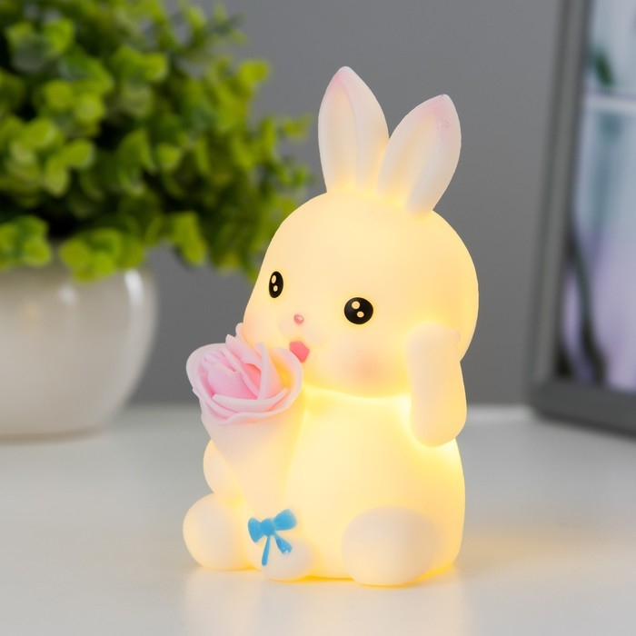 Ночник "Зайка с букетом" LED 2Вт от батареек 3хLR44 бело-розовый 6,5х6,5х11 см RISALUX