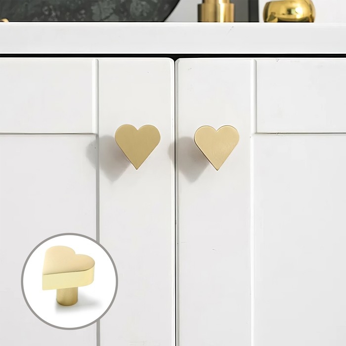 Ручка кнопка мебельная “HEART“, цвет сатиновое золото
