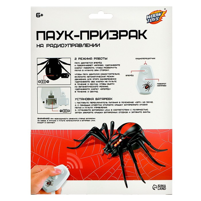 Паук радиоуправляемый «Черная вдова», работает от батареек