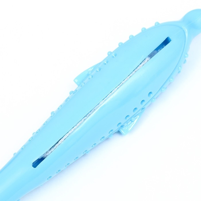 Игрушка с кошачьей мятой - это прежде всего безопасное развлечение. Игрушка для кошек выполнена в виде Дельфина с пупырчатой поверхностью, синего цвета, внутрь которого можно положить кошачью мяту.