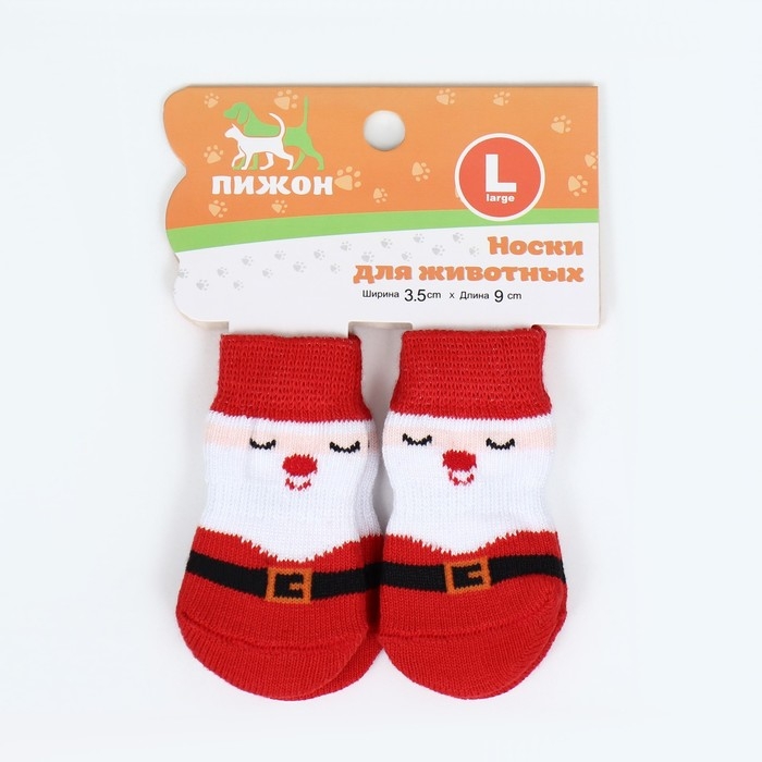 Новый год. Носки нескользящие "Дед Мороз", размер L (3,5/5 * 9 см), набор 4 шт