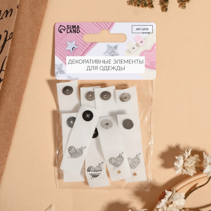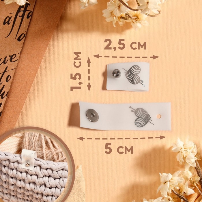 Бирка с кнопкой «Клубок», 5 × 1,5 см, 10 шт, цвет матовый/серебряный