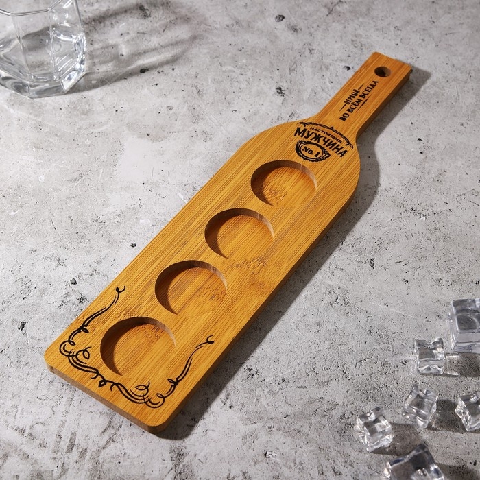 Доска сервировочная для подачи шотов, дерево «Настоящий мужчина», 9.8х39.3 см