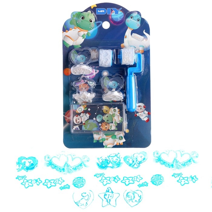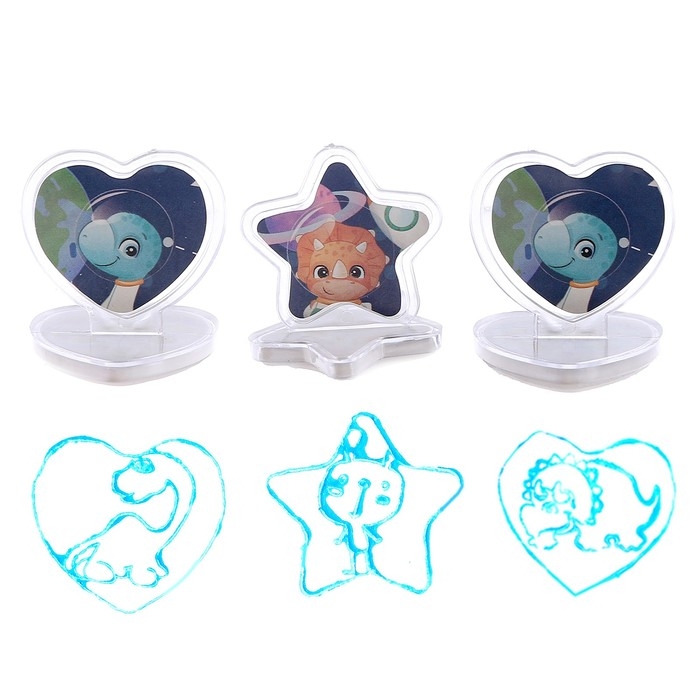 Печать цветная «Динозавры», набор 3 шт., ролик-печать с 2 насадками, штемпельная подушка