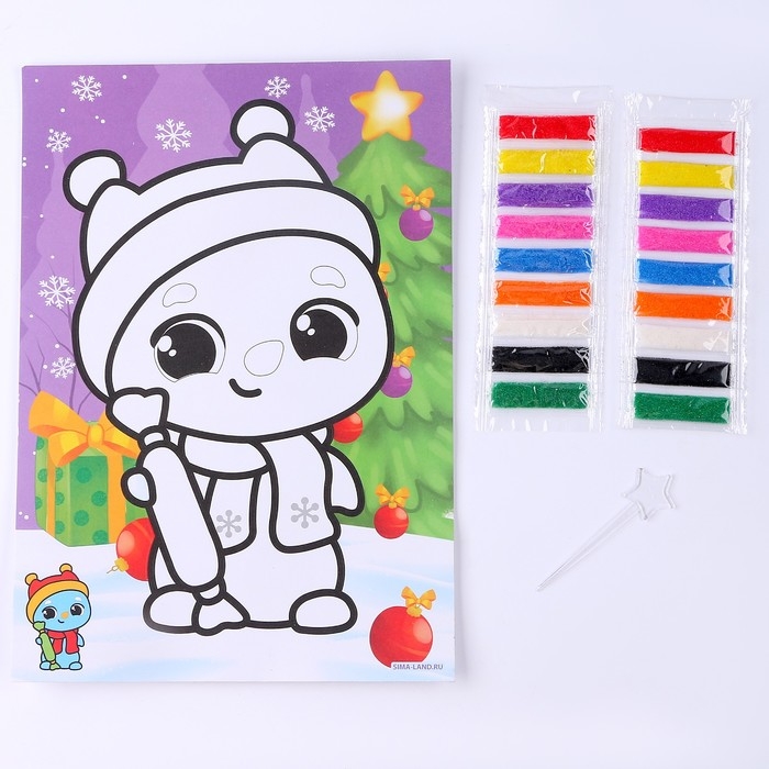 С этим волшебным набором ваш ребёнок сможет создать картину из цветного песка. Фреска станет отличным украшением детской комнаты и объектом гордости маленького художника.