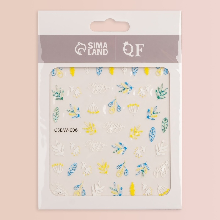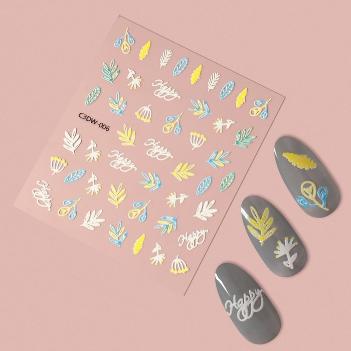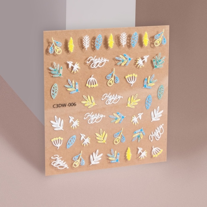 Наклейки для ногтей «Листья», объёмные, цвет белый/жёлтый/голубой