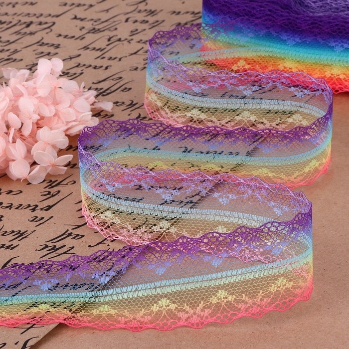 Кружево капроновое «Радуга яркая», 35 мм × 10 ± 1 м, цвет разноцветный №1