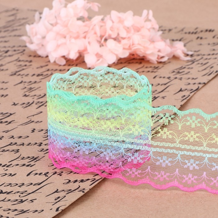 Кружево капроновое «Радуга светлая», 50 мм × 10 ± 1 м, цвет разноцветный №2