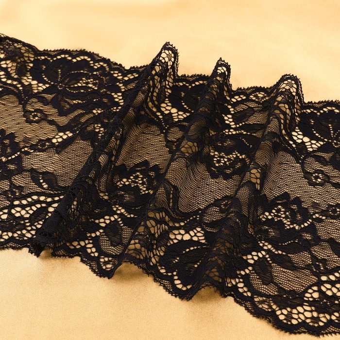 Кружевная эластичная ткань, 180 мм × 2,7 ± 0,5 м, цвет чёрный