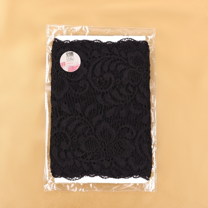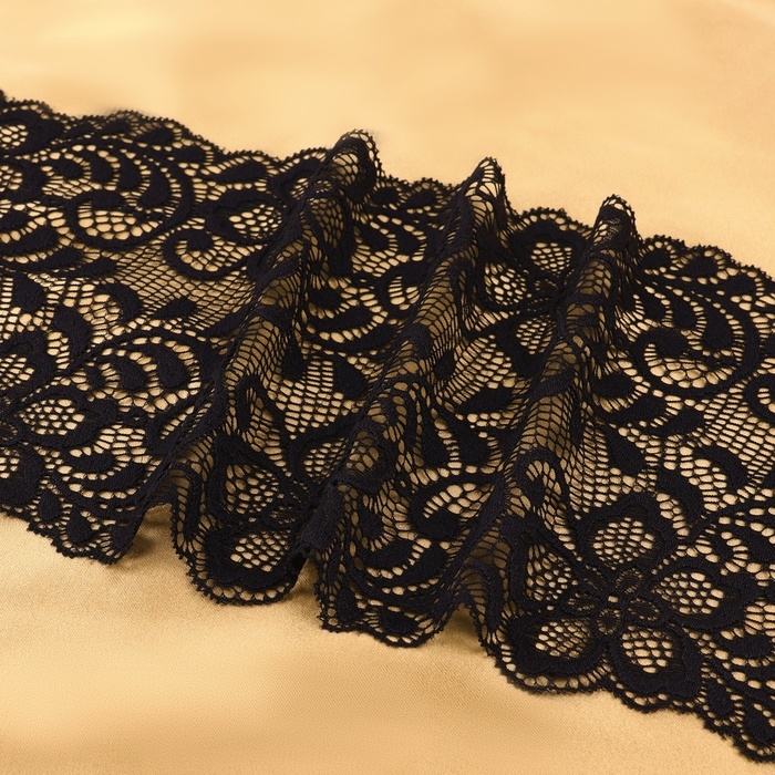 Кружевная эластичная ткань, 190 мм × 2,7 ± 0,5 м, цвет чёрный