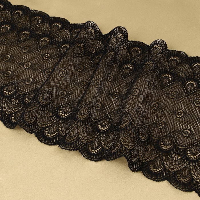 Кружевная эластичная ткань, 190 мм × 2,7 ± 0,5 м, цвет чёрный