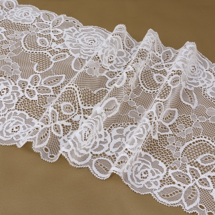 Кружевная эластичная ткань, 190 мм × 2,7 ± 0,5 м, цвет белый