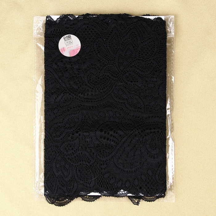 Кружевная эластичная ткань, 210 мм × 2,7 ± 0,5 м, цвет чёрный