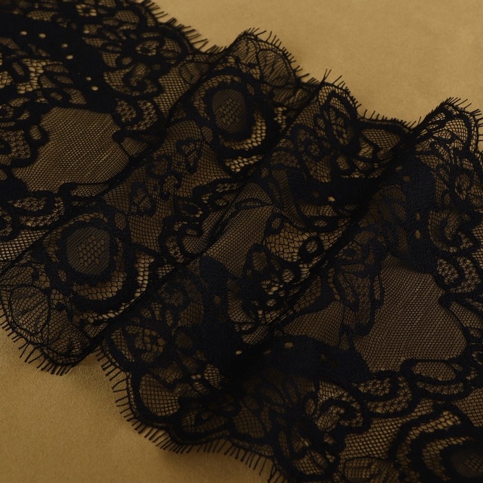 Кружево реснички, 210 мм × 3 ± 0,5 м, цвет чёрный