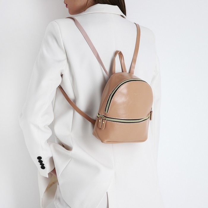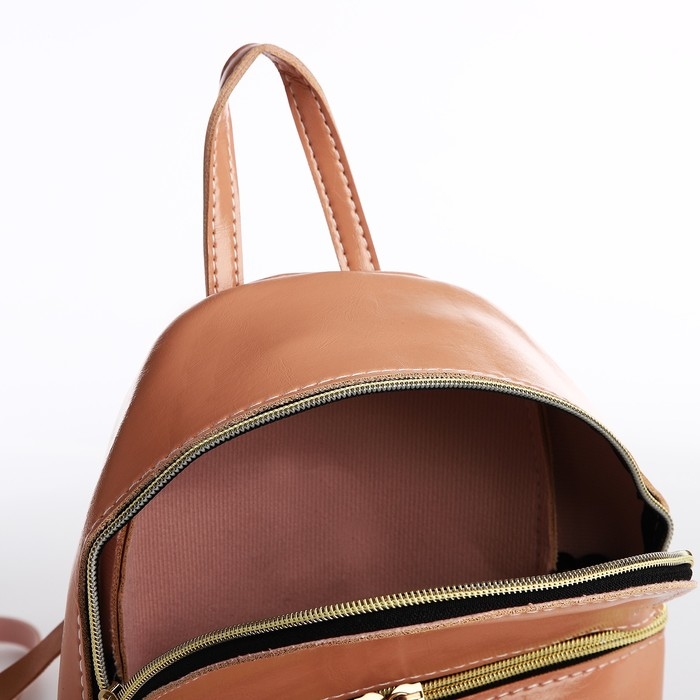 Рюкзак-мини из искусственной кожи на молнии, цвет пудровый