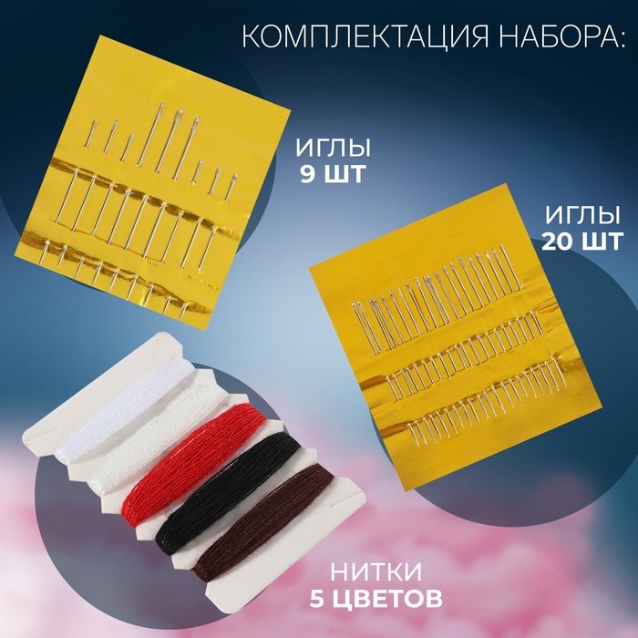 Швейный набор, 21 предмет, в блистере, цвет МИКС