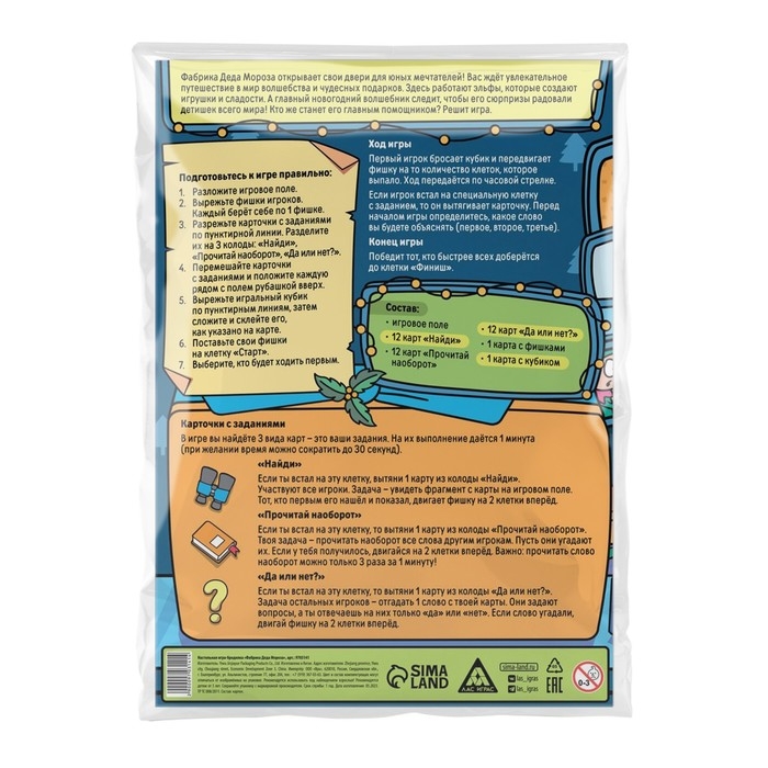 Новогодняя настольная игра-бродилка «Новый год: Фабрика Деда Мороза», 36 карт, 5+