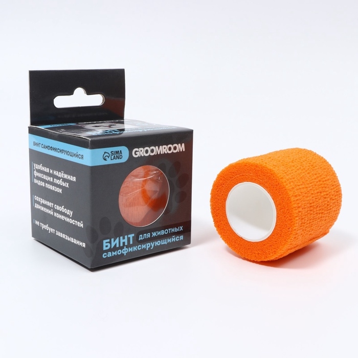 Бинт самофиксирующийся разрывной «Groomroom», 5 см х 4,5 м, оранжевый