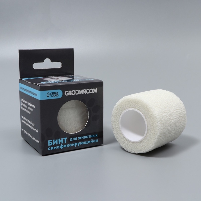 Бинт самофиксирующийся разрывной «Groomroom», 5 см х 4,5 м, белый