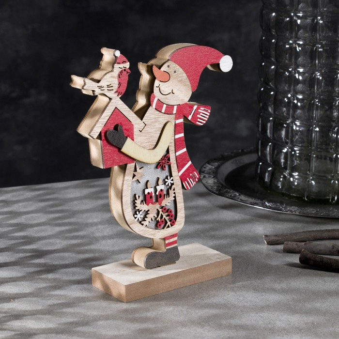 Светодиодная фигура «Снеговик» 11 × 21 × 5 см, дерево, батарейки ААх2 (не в комплекте), свечение тёплое белое